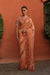 The tissue silk saree adorned with delicate scalloped edges with hand-embroidered sequin detailing. Paired with a richly designed brocade blouse featuring intricate hand embroidery, is perfect for weddings and festive celebrations.