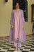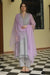 This suit set in chanderi features a two toned A-line kurta with intricate french knot embroidery, adorned with french lace across the neck and sleeves. The organza dupatta has a scalloped border and hand-made flower tassels.